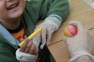 Pentru copiii internati la Institutul Oncologic "Prof. Dr. Al. Trestioreanu" (Spitalul Fundeni), incepe o perioada deosebita. Alaturi de clovnii CliniClowns si reprezentantii Fundatiei UTI, acestia incondeiaza oua pentru familiile lor uitand pentru cateva ore de suferinta provocata de afectiuni si tratamente.