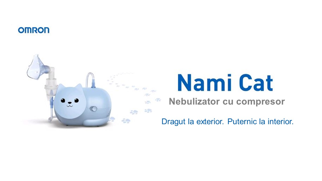 Cheshire Cat, Garfield sau Grumpy Cat?! Toamna aceasta Omron iti prezinta un nou erou cu super puteri! NAMI CAT – nebulizatorul cu compresor sub forma de pisica simpatica, trateaza rapid simptomele asociate racelii si ii ajuta pe cei mici sa isi refaca fortele cat ai spune… “Miau!”