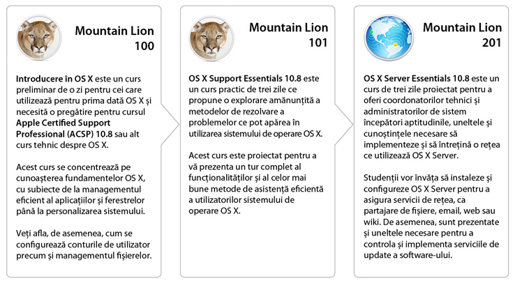 Despre ITtraining: Înfiinţat în urmă cu 10 ani ca centru de training al Romsym Data, ITtraining a devenit în 2008 primul centru de training autorizat Apple din România, în prezent singurul centru din Bucureşti. Trainerii ITtraining sunt certificaţi internaţional cu o experienţă semnificativă în utilizarea platformei Apple.