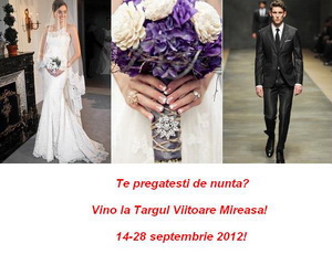 Vino la targul online Viitoare Mireasa in perioada 14-28 septembrie 2012, organizat la parterul mall-ului online Shops-and-the-city.ro si pregateste-te de nunta! Te asteapta super promotii, reduceri exclusive si oferte speciale la rochii si incaltaminte pentru mirese, rochii elegante de seara si de ocazie, accesorii si bijuterii, dar si la multe altele!