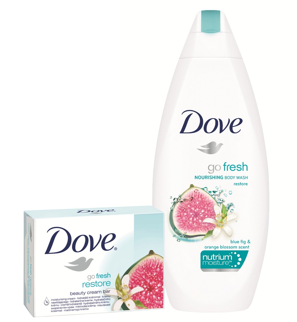 Noua gama Dove Go Fresh Restore asigura o experienta senzoriala unica gratie parfumului proaspat de smochine si flori de portocal, precum si o ingrijire superioara a pielii datorita tehnologiei inovatoare Nutrium MoistureTM din gelul de dus nutritiv si a cremei hidratante din sapunul-crema Dove.