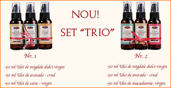 - Pachet promotional cosmetice bio: ulei de avocado, ulei de macadamia si ulei de migdale virgin. Un TRIO veritabil pentru ingrijirea pielii