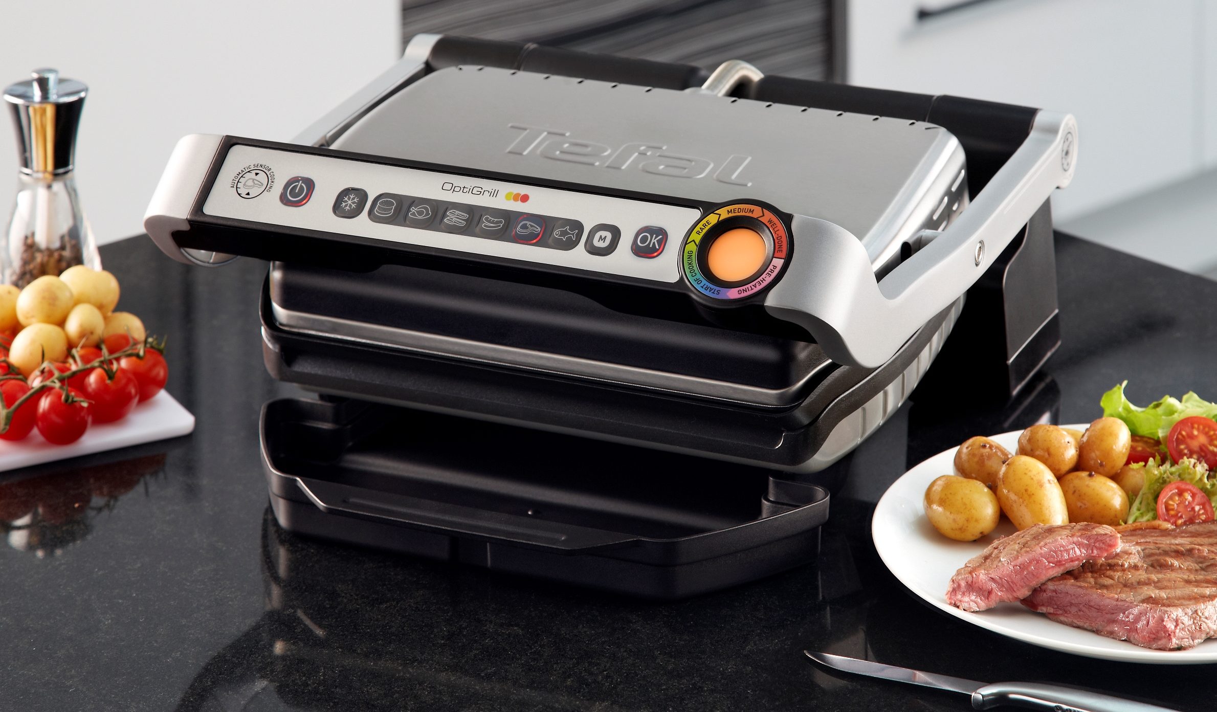 Indicatorul pentru temperatura si reglarea acesteia te ajuta sa faci reglarile necesare pentru a crea conditiile optime in functie de tipul alimentelor pe care vrei sa le pregatesti. De asemenea, acest indicator este util pentru a vedea daca placile sau preincalzit si daca poti introduce alimentele.
