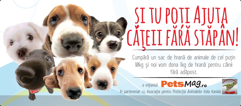 In acest sens, www.petsmag.ro unul dintre cele mai importante magazine online care comercializeaza hrana pentru animale, s-a implicat activ in ajutorarea cainilor adapostiti in cadrul Asociatiei pentru Protectia Animalelor Kola Kariola. Astfel ca, in momentul in care un client al magazinului achizitioneza cel putin 10 kg de mancare pentru caini, magazinul va dona catre aceasta asociatie 1 kg de mancare special destinata hranirii acestora, ajutand astfel in mod considerabil la intretinerea in mod corespunzator.