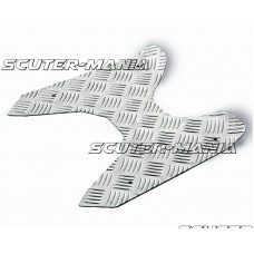 Placa pentru picioare din aluminiu se montează direct pe punctele de prindere existente ale scuterului, fără a fi necesare adaptări sau perforări suplimentare. Kitul de montaj include șuruburi din oțel inoxidabil, care asigură o fixare fermă și rezistentă în timp, fără risc de ruginire sau slăbire.