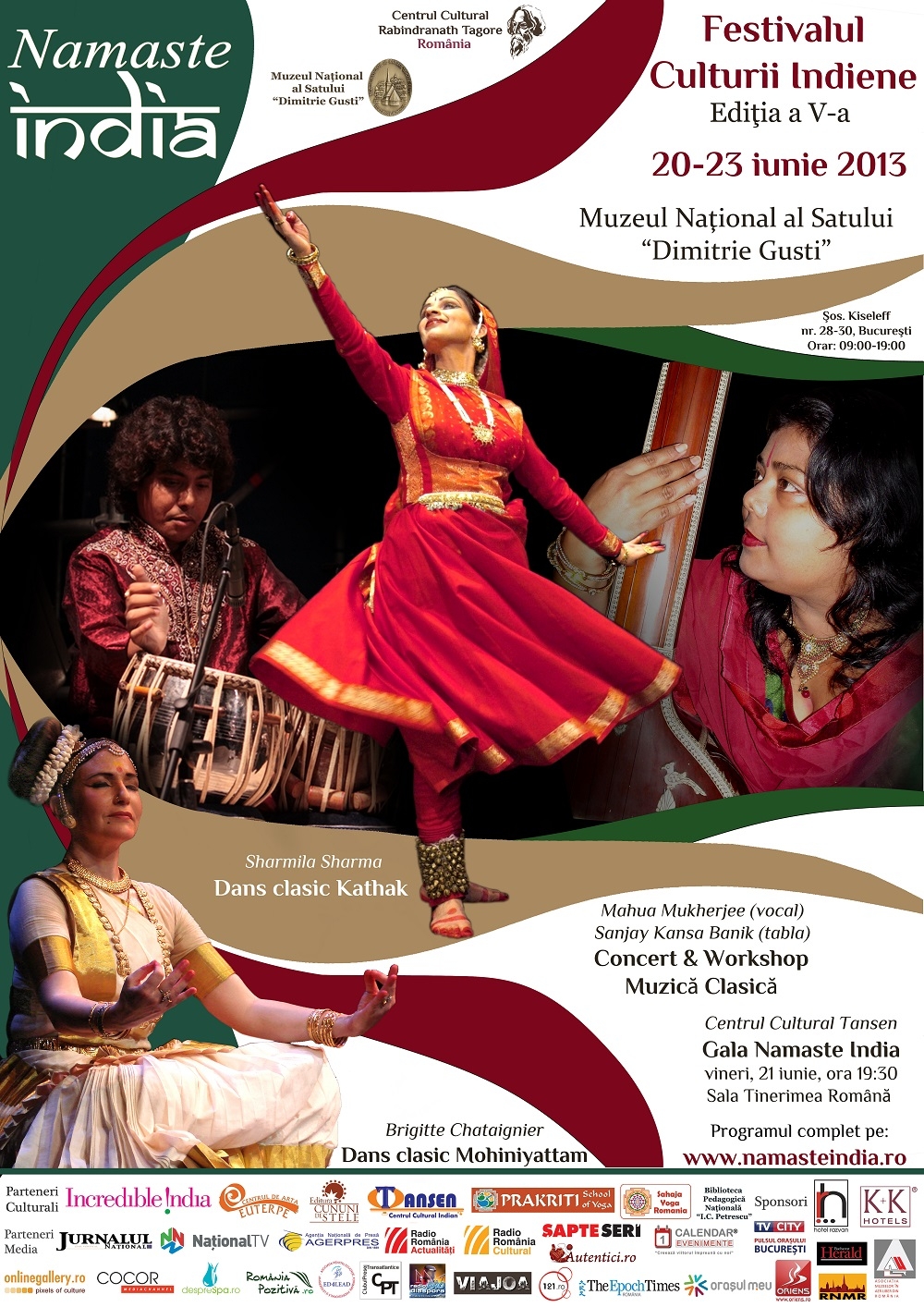 Festivalul va include spectacole de dans, muzica, momente si discutii despre literatura, filosofie, expozitii de fotografie si artizanat si gastronomie. Vizitatorii vor putea vedea in premiera in Romania spectacolul de muzica clasica indiana in stilul Khayal, in recitalul „Garlands of Sounds”, sustinut de Mahua Mukherjee (vocal) si Sanjay Kansa Banik (tabla). Publicul se va putea familiariza si cu stilurile devotionale bhajan si qawwali, interpretate de grupul Nirmal Bhakti sau cu gratia dansului clasic prin intermediul a doua spectacole in stilurile Kathak, specific Indiei de nord si Mohiniyattam, specific Indiei de sud. Printre multe alte surprize pregatite de organizatorii festivalului, Muzeul Satului va gazdui si un targ de produse traditionale si specialitati culinare, haine, bijuterii, obiecte decorative si mirodenii.
