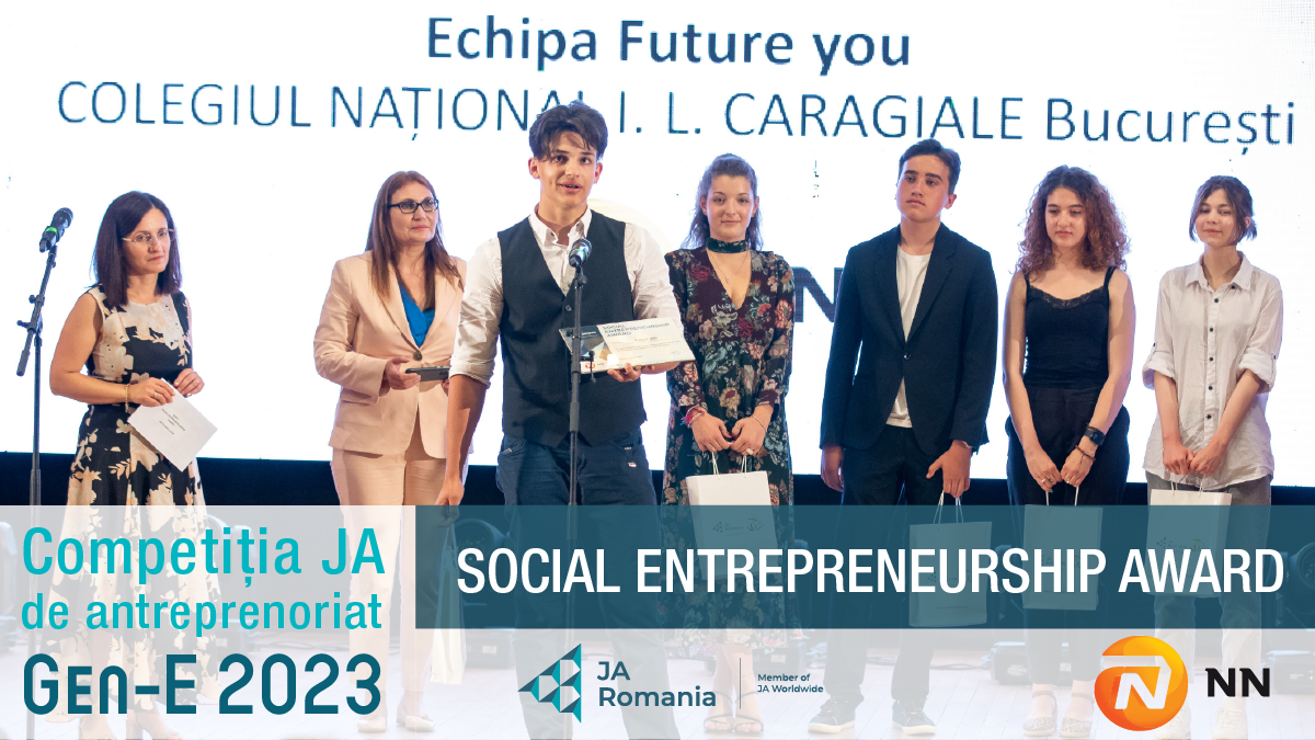 5 liceeni de la Colegiul Național I.L. Caragiale din București au pilotat Future you, un proiect de antreprenoriat social, conceput pentru a oferi tinerilor posibilitatea să experimenteze ce înseamnă să ai un job, susținere să își aleagă domeniul în care vor să-și dezvolte cariera și acces la cursuri, resurse de învățare și teste de autoevaluare care să-i ajute să se pregătească pentru viitor. Proiectul a fost dezvoltat în cadrul competiției Gen-E 2023, desfășurată de Junior Achievement și a primit premiul Social Entrepreneurship Award din partea NN România, iar echipa Future you a reprezentat România cu acest proiect în finala globală a competiției Social Innovation Relay (SIR), concurând cu echipe din alte 8 țări.