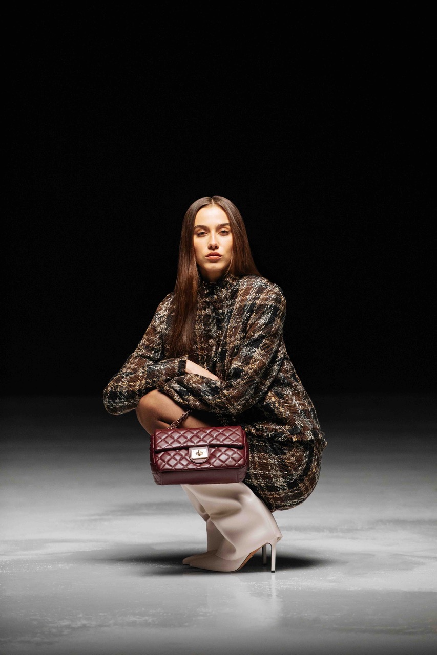 In paleta stilistica a campaniei isi gasesc locul si tonurile atemporale de bej, crem si burgund — nuante pe care le adoram indiferent de sezon. Setul din tweed in stil „modern chic” de la VICOLO, purtat alaturi de cizme albe inalte si celebrele genti matlasate de la NINE WEST, ofera o interpretare actuala a elegantei traditionale. Este o tinuta care imbina rafinamentul vintage cu un aer fresh, perfecta pentru un decembrie in care eleganta devine un act de celebrare.