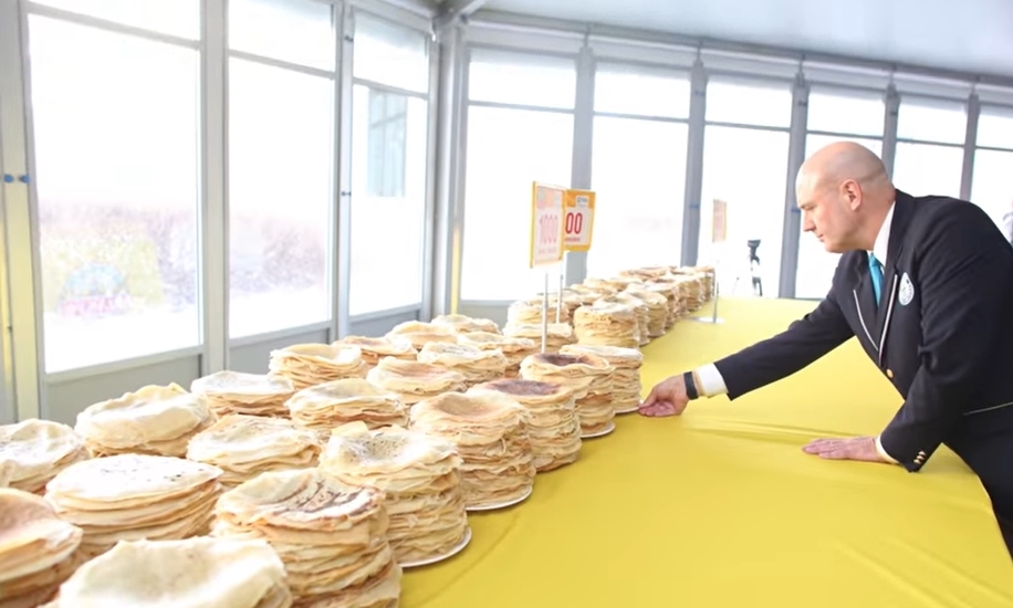 La categoria dulciuri, nu e vorba de o cofetarie Bucuresti, deși ne-am fi gândit că e o variantă, având în vedere ce populare sunt deserturile în România. Rușii sunt cei care dețin recordul la clătite. „Săptămâna clătitelor” din Rusia a fost celebrată în 2017 cu aproape 13.000 de clătite. 16 bucătari au muncit o zi întreagă într-o piață din Moscova pentru a crea preparatele pe loc. Efortul lor a meritat, fiind răsplătit cu recunoașterea mondială.