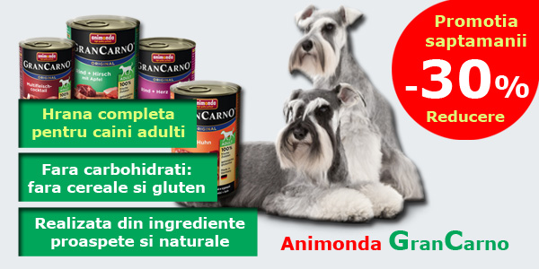 Profita acum de reducerea de 30% la hrana umeda pentru caini, Animonda GranCarno. Hrana super premium realizata din ingrediente naturale si proaspete ce contribuie semnificativ la imbunatatirea starii de sanatate.