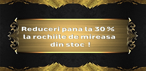 Reduceri la toate rochiile de mireasa din stocul salonului La Novia ! Intra pe www.lanovia.ro si profita de noua promotie. Toate modelele de rochii de mireasa beneficiaza, in aceasta perioada, de o reducere substantiala de pana la 30%, pentru ca tu sa te poti bucura, in ziua nuntii, de rochia mult visata!