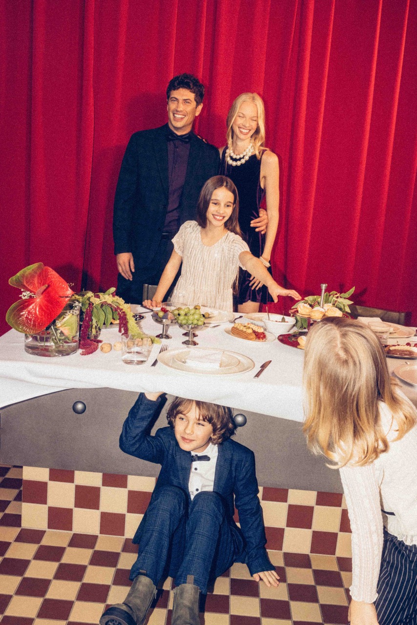 Pentru copii, brandul ofera versiuni in miniatura ale stilurilor pentru adulti – toate in spiritul sarbatorii impreuna. Baietii se pot bucura de costume mici si seturi camasa-cu-papion, iar fetitele de mini costume cu fusta in carouri. Veti gasi, de asemenea, seturi si rochii in nuante delicate, precum si clasicul rosu, purtabil din cap pana in picioare: rochie, colanti si balerini.