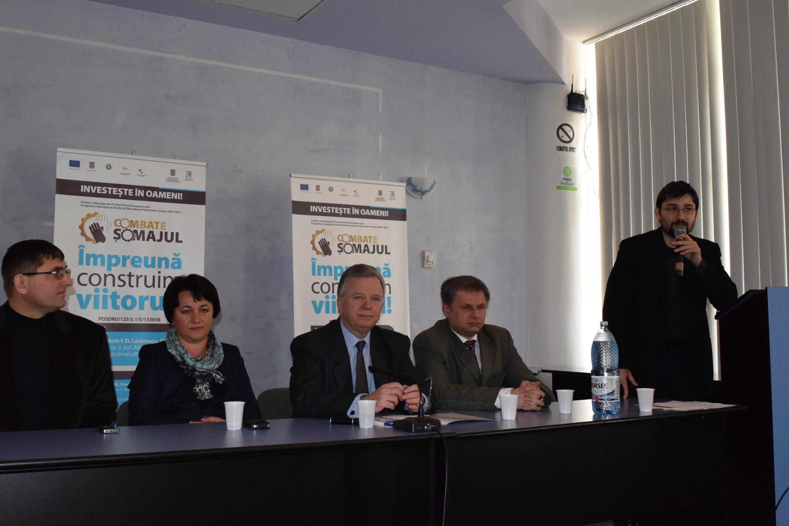 În data de 20 februarie 2015 s-a derulat conferința intermediară a proiectului “COMBATE ŞOMAJUL” în sala de conferințe a Hotelului Parc din Alba Iulia. Evenimentul a fost organizat de către Colegiul Tehnic I. D. Lăzărescu Cugir, beneficiar al proiectului, în parteneriat cu S.C. Consulting Center S.R.L din Deva și Asociația Pro Factum Alba Iulia.