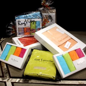 -seturi cadou “el si ea” din gama de textile de lux Guy Laroche ce cuprind urmatoarele articole: set de 4 prosoape de bucatarie(47x67cm) si set de 2 prosoape de baie(50x 90cm si 70x140cm), estetic ambalate si inscriptionate cu sigla Guy Laroche la pret promotional.