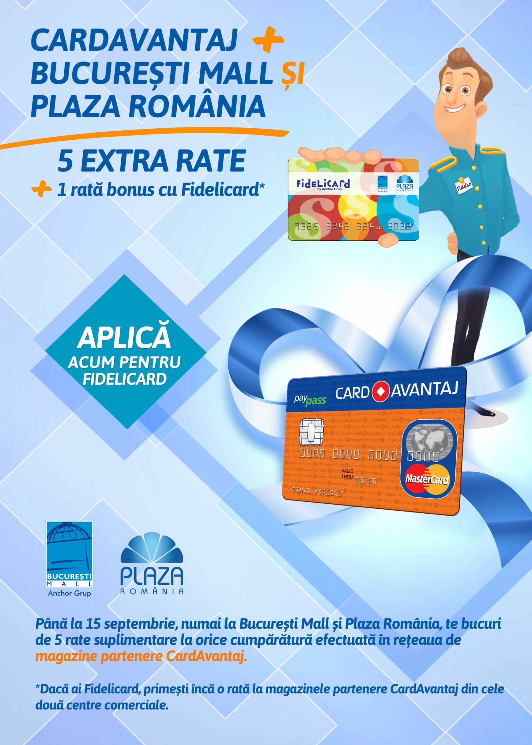 Sase rate suplimentare prin CardAvantaj si Fidelicard in Bucuresti Mall si Plaza Romania