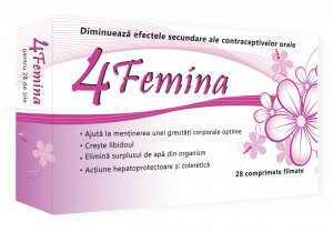 Atunci cand ne dam seama ca stilul nostru de viata nu este unul “ideal”, este de dorit sa incercam sa ne ajutam organismul sa invinga stresul si agresiunile la care este supus. 4Femina este un supliment benefic pentru toate femeile, fie ca folosesc sau nu anticonceptionale, datorita continutului sau bogat in vitamine si minerale provenite din extracte naturale.