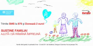 Donand 2 euro prin SMS la numarul 879, fiecare persona poate ajuta un copil sa ramana alaturi de parinti si sa beneficieze de dragostea, atentia si grija de care are nevoie pentru a se putea dezvolta armonios. Numarul de telefon este oferit gratuit in perioada 9 mai – 3 iunie 2011 de Vodafone, Orange si Cosmote.