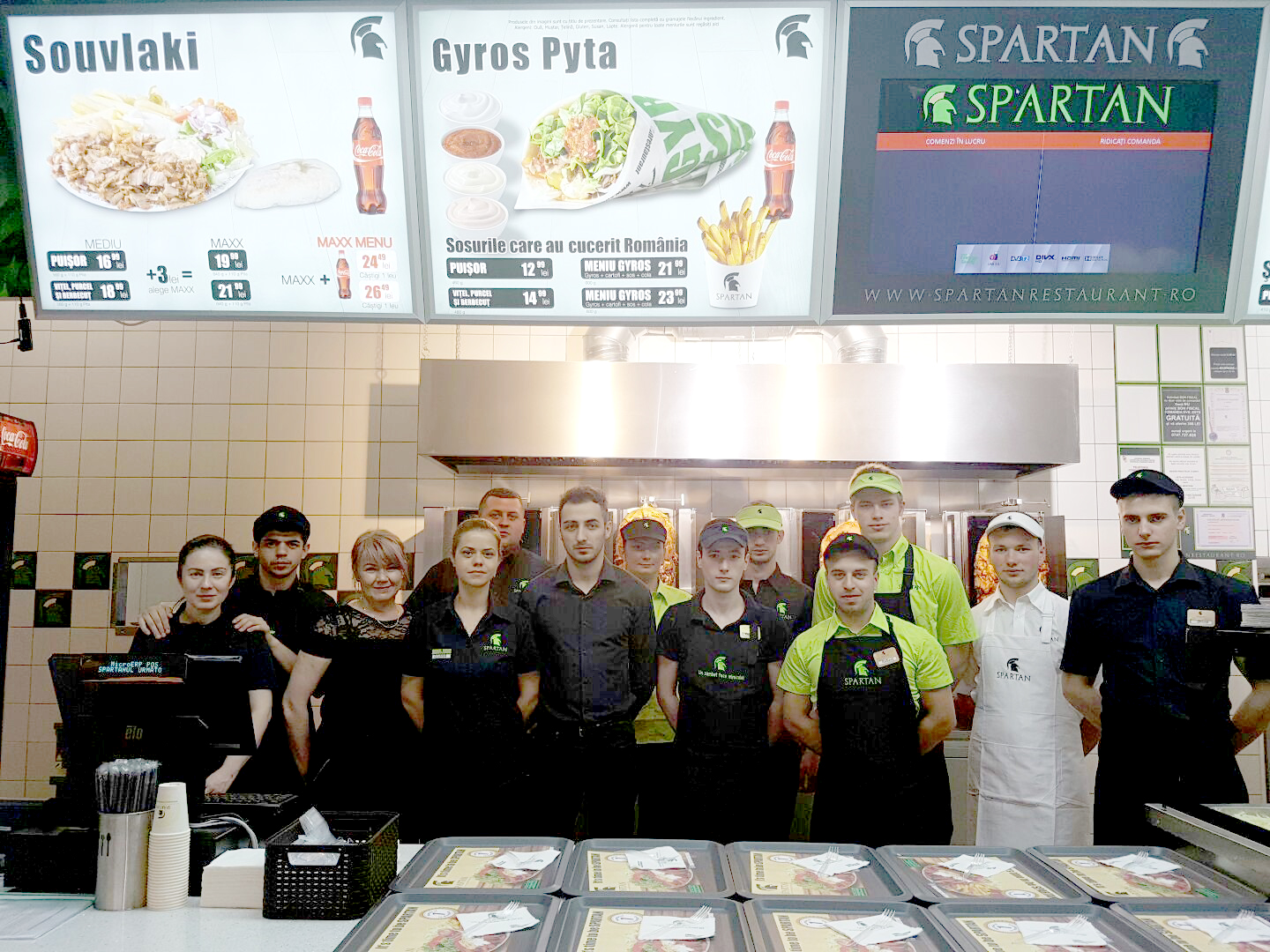 Cea mai noua unitate Spartan si-a asteptat clientii cu produsele care au consacrat deja aceasta marca in toata tara: souvlaki pregatit dupa reteta proprie, precum si restul meniurilor servite alaturi de pyta proaspata, preparata in fata clientilor, si sosuri pregatite din ingrediente naturale.