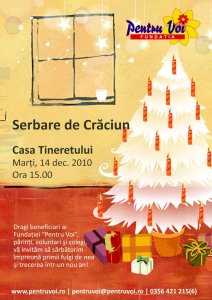 Fundatia „Pentru Voi” va organiza marti, 14 decembrie de la ora 15.00, la Casa Tineretului din Timisoara, un spectacol de Craciun pentru beneficiarii acesteia.