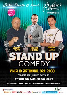 Cristian Dumitru (unul din pionierii acestui gen de spectacol de la noi) alaturi de George Bonea (finalist Romanii au talent) si Balboni Fulvio (un italian cu buletin romenesc) ti-au pregatit o portie de umor pe saturate.