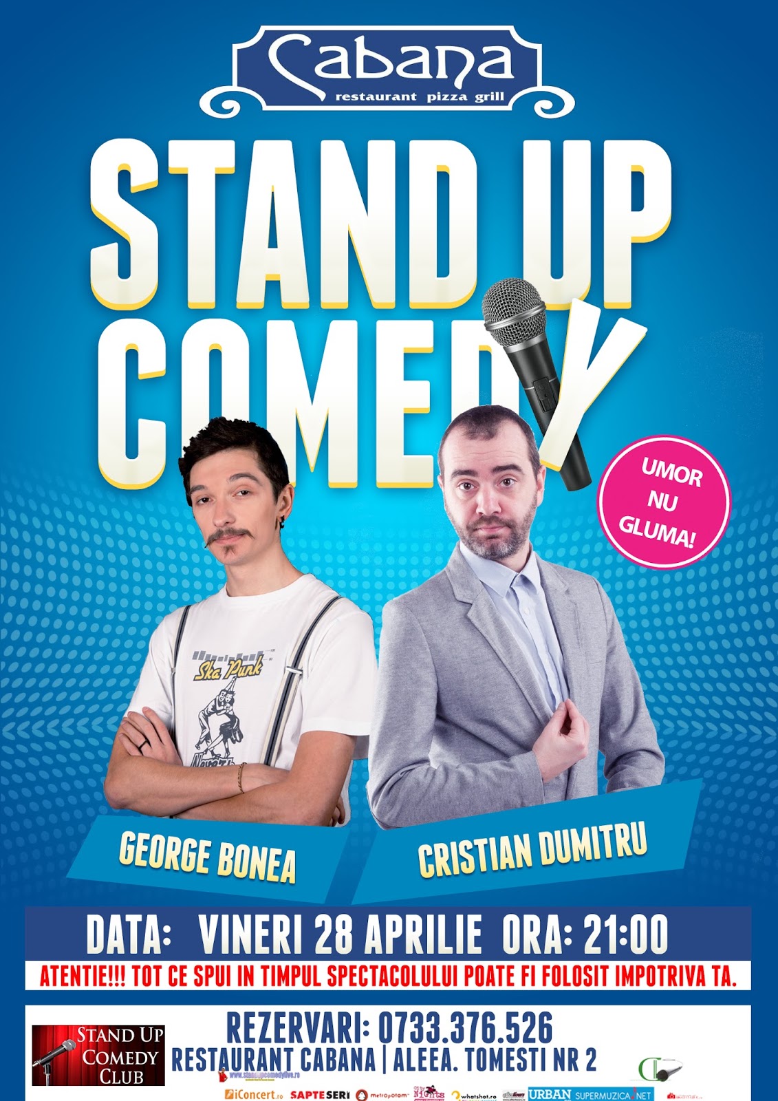 Vineri, 28 aprilie 2017, de la ora 21:00, va invitam la un super show de Stand-Up Comedy cu Cristian Dumitru & George Bonea