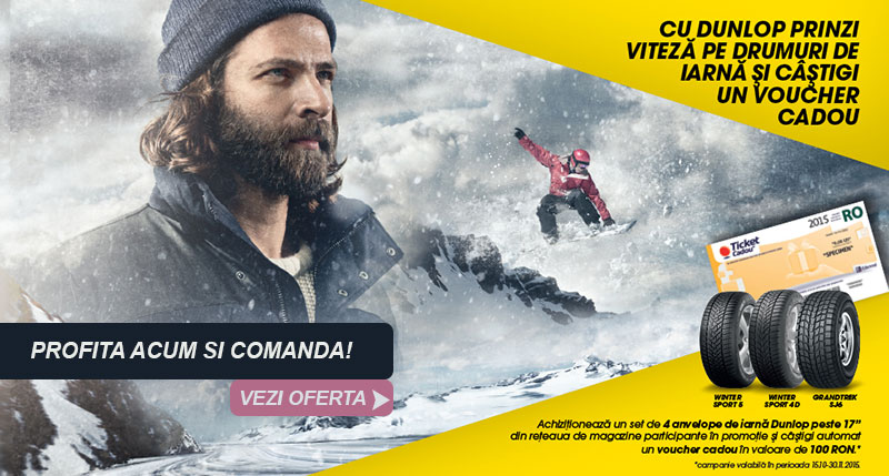 Cum beneficiezi de Voucherul Cadou? 1. Cumperi 4 anvelope iarna Dunlop de la AnveloSHOP cu R>=17 , din categoriile Turisme, 4x4/SUV 2. Completeaza datele tale in sectiunea aferenta din siteul promotie.dunlop.eu. Toate campurile sunt obligatorii, inclusiv incarcarea copiei facturii. 3. Primesti automat un Voucher Ticket Cadou Edenred de 100 lei prin curier privat in termen […]