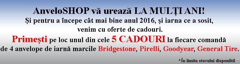 Pentru a incepe cat mai bine anul 2016, venim cu oferte de cadouri. Primesti pe loc unul din cele 5 CADOURI la fiecare comanda de 4 anvelope de iarna marcile Bridgestone, Pirelli, Goodyear, General Tire. *Cadourile se acorda in limita stocului disponibil Cumperi 4 anvelope de iarna Pirelli de la AnveloSHOP si primesti un CADOU. […]