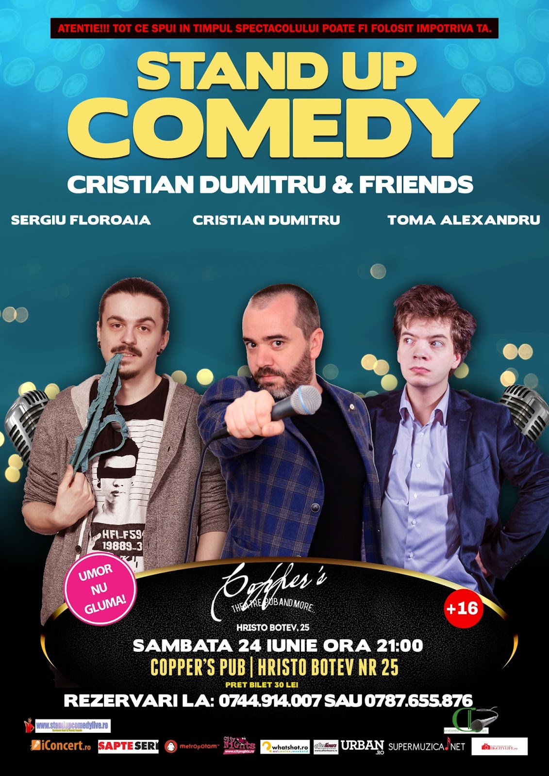 Stand-Up Comedy Sambata 17 Iunie Bucuresti ora 21 Sambata, 17 iunie te asteptam la STAND-UP COMEDY by Cristian Dumitru &Friends la Copper’s Pub. Spectacolul va avea loc incepand cu orele 21. Rezervari si informatii la: 0744.914.007 sau la 0787.655.876 Te vor face sa razi in hohote: Adrian Lungu este câștigător al Stand Up Fest 2015, […]