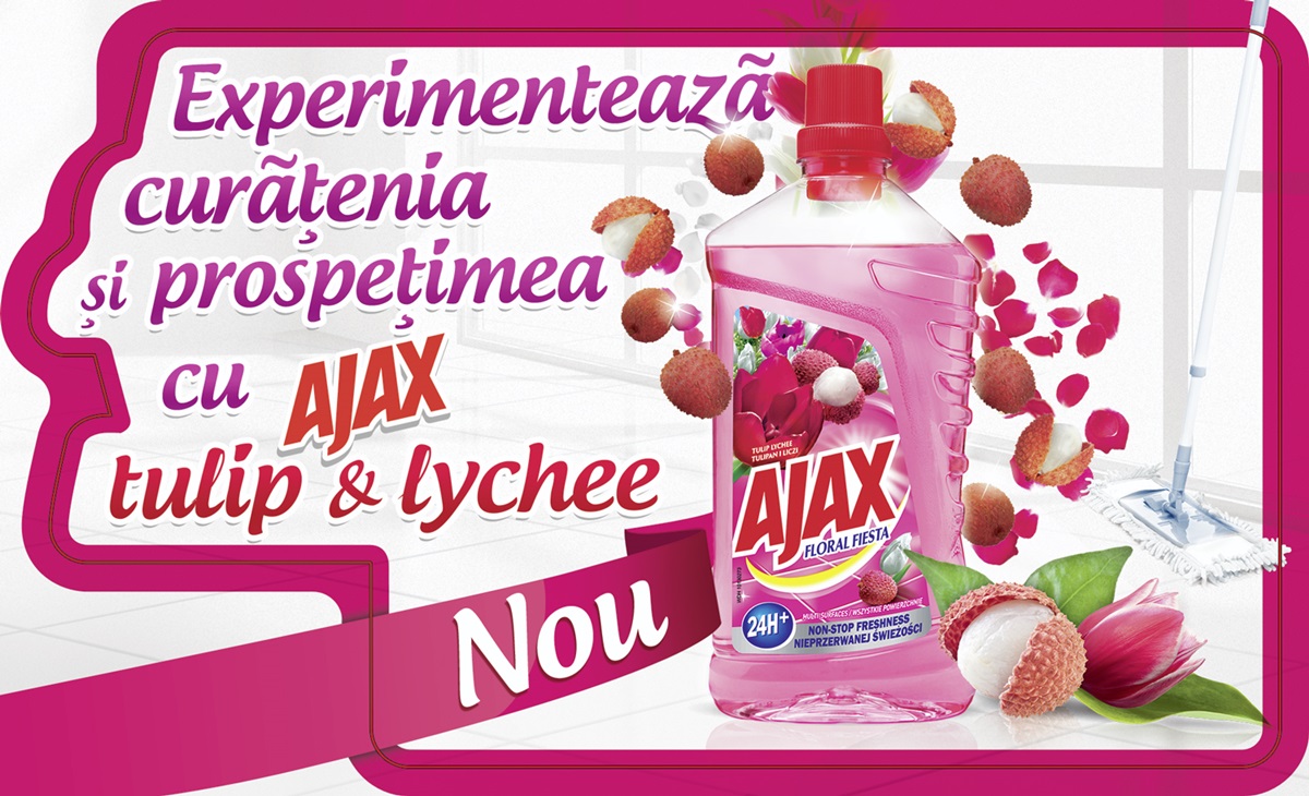 Colgate-Palmolive România aduce în atenţia românilor, începând cu luna octombrie 2013, două produse din gama AJAX FLORAL FIESTA, cu accente fructoase și florale: noul AJAX Tulip & Lychee și AJAX Lagoon. Produsele AJAX se bucură și de o campanie promoțională, cu reduceri la toate gamele de curățat suprafețe AJAX, venind astfel în întâmpinarea consumatorilor ce […]