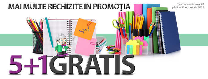 Pana la sfarsitul acestei luni peste 100 de produse de papetarie participa la promotia 5+1: creioane mecanice, pixuri Schneider, gume de sters, ascutitori, mine de pix si de creion, plicuri, banda adeziva, caiete, lipici, dosare, notes-uri adezive, caiete, pixuri, markere, caiete studentesti, clipboard si multe alte produse. Astfel, pentru 5 produse de papetarie de acelasi […]