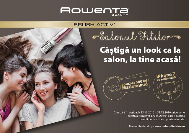 Rowenta te invita alaturi de prietenele tale in Salonul Fetelor – o campanie promoționala desfasurata la nivel național, in perioada 13 octombrie – 31 decembrie 2016, in care te poți inscrie daca achiziționezi orice perie rotativa din gama Rowenta Brush Activ’. Surprizele sunt pe masura produsului, sofisticate si in pas cu cerințele vieții urbane, in […]