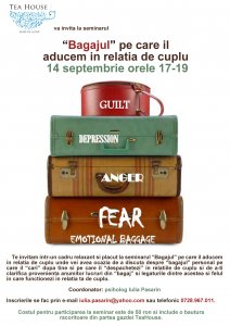 Intr-o locatie ce inspira calm si relaxare te invit sa participi la seminarul “Bagajul” pe care il aducem in relatia de cuplu care va avea loc in data de 14 septembrie, intre orele 17-19 Cine si cum suntem, unde si cum am crescut, ce si cat ne permitem sa simtim, ce am asimilat pe parcursul […]