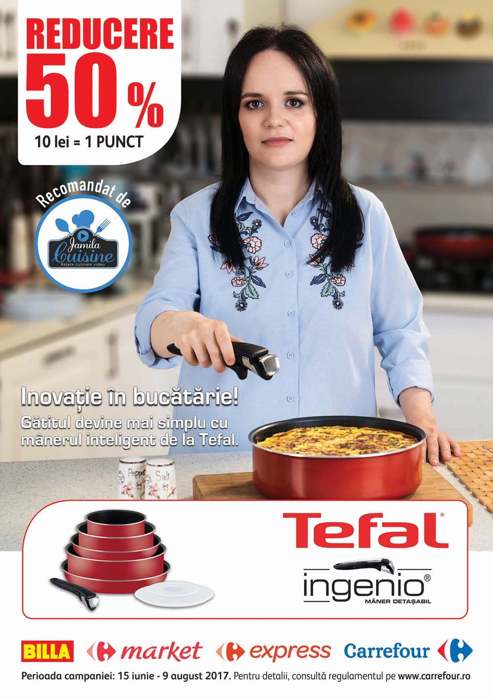 Între 15 iunie şi 9 august 2017, vino în hypermarket-urile Carrefour, magazinele Billa sau supermaketurile Market și Express și, la fiecare 10 lei cheltuiți, primeşti un punct de loialitate pe care îl transformi în reduceri la gama de vase de gătit Tefal Ingenio! Refresh your cuisine!