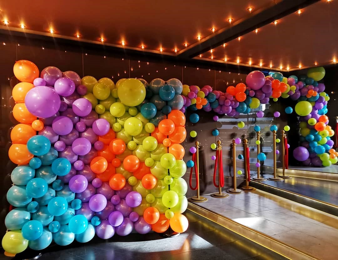 4. Pereți din baloane: Un perete întreg de baloane poate oferi un fundal impresionant pentru fotografii sau poate servi ca element de decor principal. Pereții de baloane pot fi realizați în diverse culori și dimensiuni, în funcție de spațiul disponibil și de efectul dorit. Aceștia pot include chiar și baloane cu confetti sau baloane luminate pentru un plus de impact vizual.