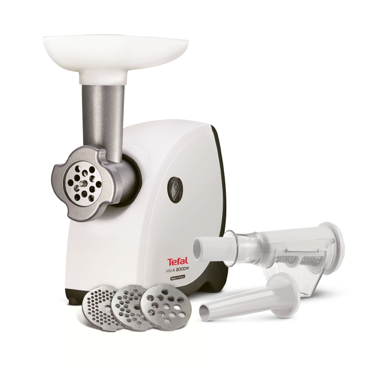 Tăvița de plastic și accesoriul pentru cârnați completează detaliile unei mașini de tocat cu multiple întrebuințări. În plus, Tefal HV4 NE445 are un design compact, ușor de depozitat, astfel încât să fie o prezență discretă, dar importantă, în bucătărie.