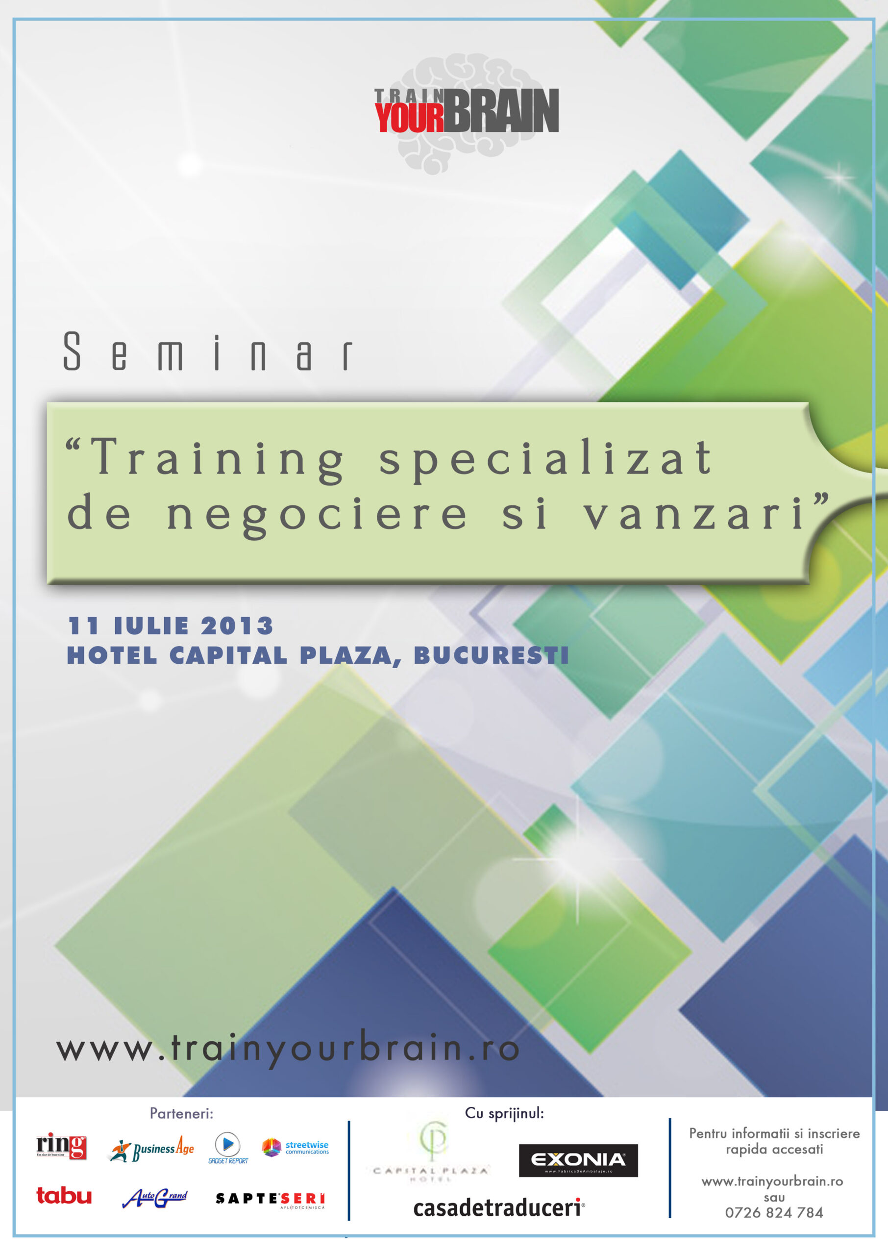 Reduceri acordate: 10 % pentru inscriere si plata pana in data de 8 iulie 2013