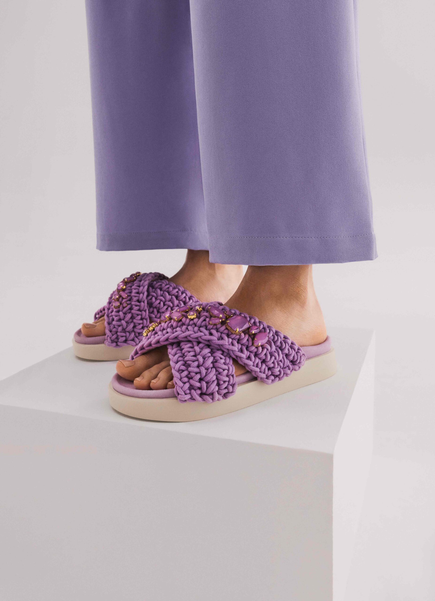 Slides de oras – un hibrid intre sandale si slapi de piscina, acest model a castigat inimile influencerilor si un loc de cinste in aproape orice pictorial de moda. Il recunosti dupa talpa groasa, barete crosetate, din stofa sau din piele.. Ii gasesti in colectiile Tommy Jeans, Casadei, Fabiana Filippi si N.21