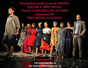 Luna Septembrie deschide sezonul pentru noile cursuri de actorie organizate de Teen Media Academy. Mai multe informaţii despre cursuri şi despre înscrieri găsiţi de www.teenmedia.ro.