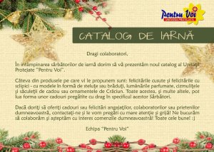 In intampinarea sarbatorilor de iarna Fundatia "Pentru Voi" va prezinta noul catalog de produse al Unitatii Protejate ”Pentru Voi”, realizate de cele 45 persoane cu dizabilitati intelectuale angajate in cadrul acesteia.