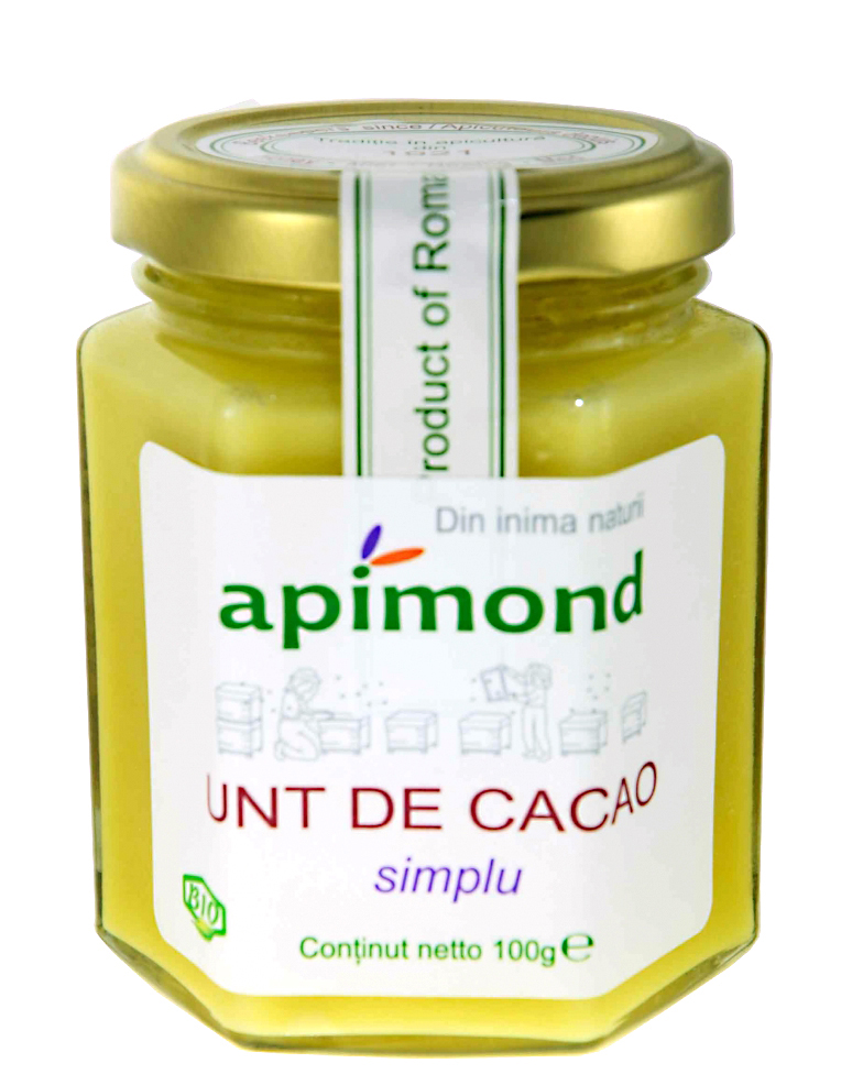 Untul de cacao Bio oferit de Apimond este un adevarat elixir, atat in alimentatie, cat si in cosmetica. Obtinut prin presarea boabelor de cacao, pe care aztecii le considerau un dar al zeilor, noul produs reprezinta, dupa cum spuneau vechile legende amerindiene, izvorul adevarat al intelepciunii si al cunoasterii, dar in acelasi timp si un izvor de frumusete. Cu un continut bogat in grasimi nesaturate, Omega 3 si Omega 6, vitaminele A, E si K, in polifenoli, fitosteroli, acid stearic, oleic, palmitic, linoleic, tocoferoli, tocotrienoli, squalene si fitosteroli, el reprezinta o sursa esentiala de sanatate si frumusete.