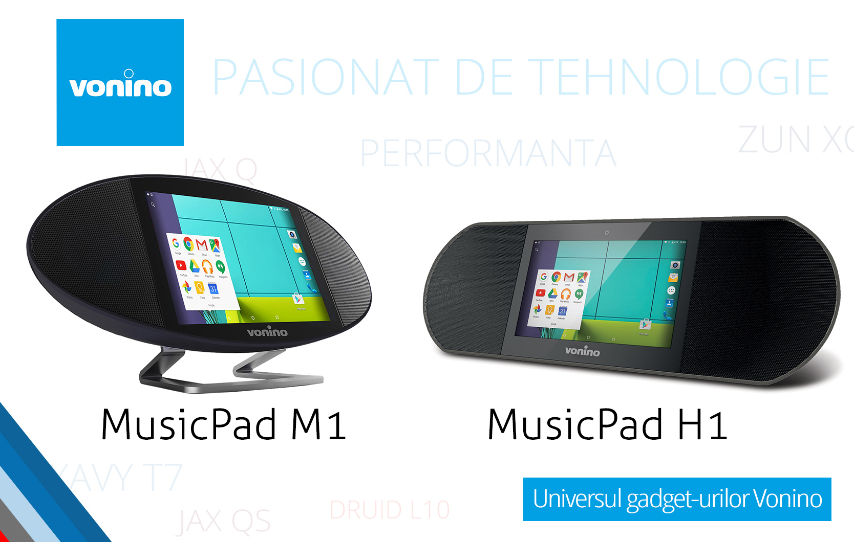 Vonino MusicPAD H1 și M1 sunt două dintre cele câteva gadget-uri de tip Smart Home Entertainment System cu sistem de operare Android disponibile la nivel mondial. Astfel, fiecare poate avea acasă un gadget care îmbină toate funcționalitățile unei tablete cu sistem de operare Android 5.1 Lollipop cu utlitatea unui music player: touchscreen capacitiv IPS de 7 inci, procesor Quad-Core, spațiu de stocare de 8GB extensibil prin card microSD de până la 32GB, 1GB memorie RAM, conectivitate Wi-Fi, Bluetooth 4.0 și HDMI, dar și două difuzoare de câte 5 wați și funcția Cast Screen.
