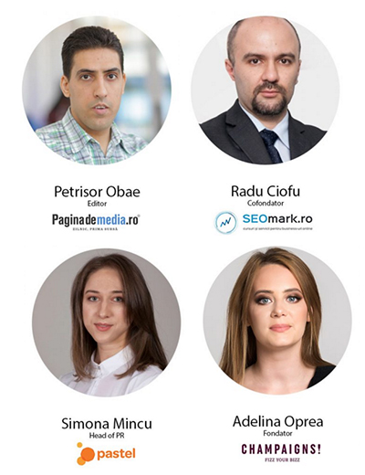 Petrisor Obae (Paginademedia.ro), Radu Ciofu (SEOmark.ro), Simona Mincu (pastel) si Adelina Oprea (Champaigns) sunt cativa dintre speakerii prezenti la eveniment.