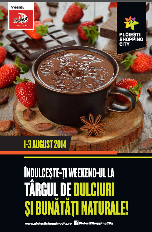 Târgul de Dulciuri și Bunătăți Naturale va fi deschis în perioada 1 – 3 august, de la 10:00 la 22:00, în zona scărilor rulante și în galeria Ploiești Shopping City. Accesul vizitatorilor în cadrul târgului este gratuit.