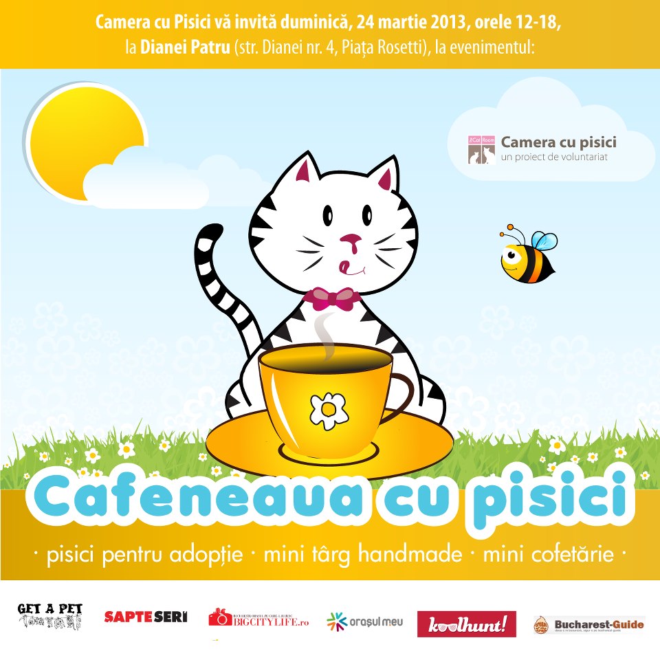 Cei care vor trece pragul Cafenelei cu Pisici se vor putea bucura de articole hand-made, prajituri de casa si cea mai „pisiceasca” lucrare a lui George Rosu, unul dintre cei mai în voga graficieni ai momentului. Nu în ultimul rand, vor putea petrece cateva ore într-o atmosfera reconfortanta, alaturi de pisicile aflate în grija Camerei cu Pisici si Free Pets.