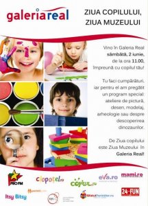 “Ii invitam pe copii in Galeriile Real sambata, 2 iunie, de la ora 11.00, la Ziua copilului, Ziua Muzeului. Aici vor desena, picta, modela ori chiar cauta in nisip comori nebanuite: fosile preistorice de dinozauri sau roci pretioase” – spune Ioana Laura Pasca, director marketing Galeria Real.